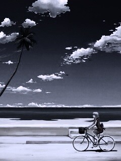 «Девушка едет на велосипеде вдоль берега»