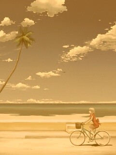 «Девушка едет на велосипеде вдоль берега»