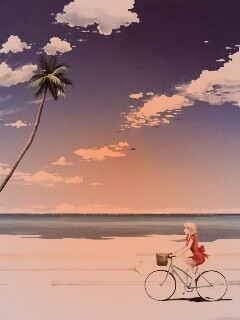 «Девушка едет на велосипеде вдоль берега»