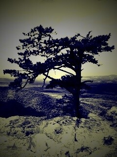 «Горное дерево в черно-белых тонах»