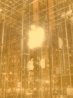 «Отражение логотипа Apple в стеклянном здании»
