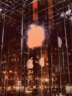 «Отражение логотипа Apple в стеклянном здании»
