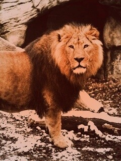 Обои для рабочего стола «Красивый лев в лесу» 240х320 с фильтром toaster (оригинал 2560х1600)