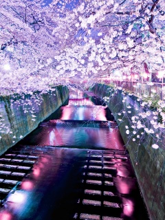 Обои для рабочего стола «Река и цветение сакуры» 240х320 (оригинал 1920х1200)