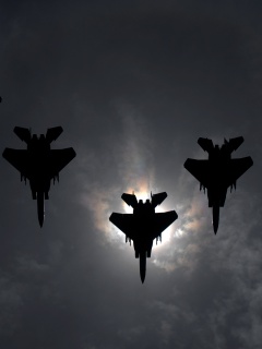 «Ряд истрибителей на фоне солнца»