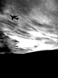 Обои для рабочего стола «Самолет в закатном небе» 240х320 с фильтром inkwell (оригинал 1920х1200)
