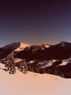 Обои для рабочего стола «Лес в горах» 240х320 с фильтром toaster (оригинал 2560х1600)
