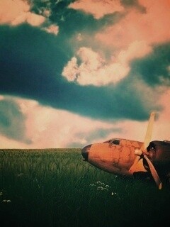 «Старый ржавый самолет на лугу»