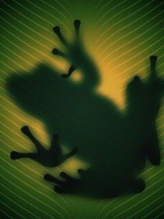 «Силуэт лягушки просвечивает сквозь зеленый лист»
