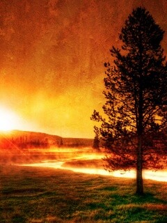 Обои для рабочего стола «Закат за речкой» 240х320 с фильтром vibrance (оригинал 2560х1600)