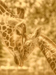 Обои для рабочего стола «Жирафа и жирафёнок» 240х320 с фильтром kelvin (оригинал 2560х1600)