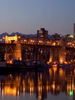 «Мост и катера на закате»