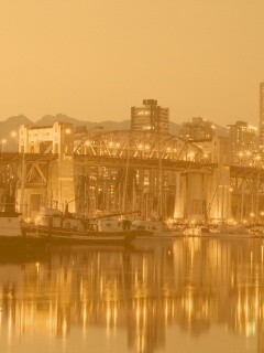 «Мост и катера на закате»