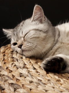 «Пушистый кот спит на корзине»