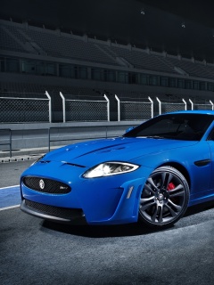 «Синий спорткар на гоночном треке»