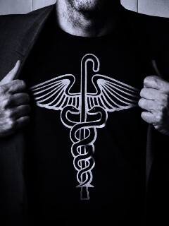Обои для рабочего стола «Футболка со змеями и тростью» 240х320 с фильтром gotham (оригинал 1500х2222)