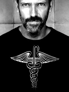 «Доктор Хаус в футболке со змеями на трости»