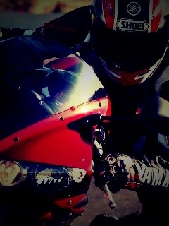 Обои для рабочего стола «Мотоциклист на красной ямахе» 240х320 с фильтром lomo (оригинал 1920х1200)