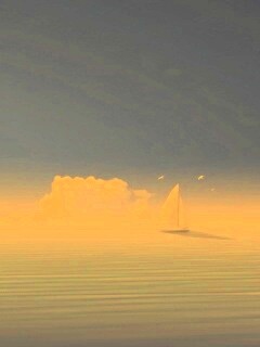 «Голубые обои под хорошее настроение с парусником»