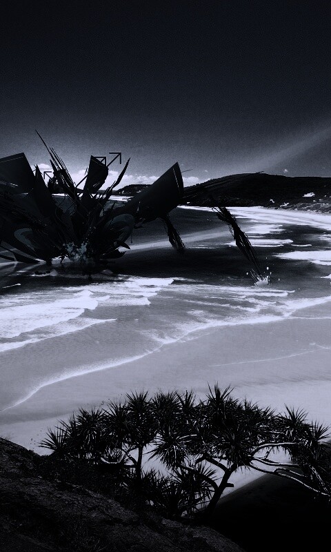 Обои для рабочего стола «Робот на побережье» 480х800 с фильтром gotham (оригинал 2560х1600)