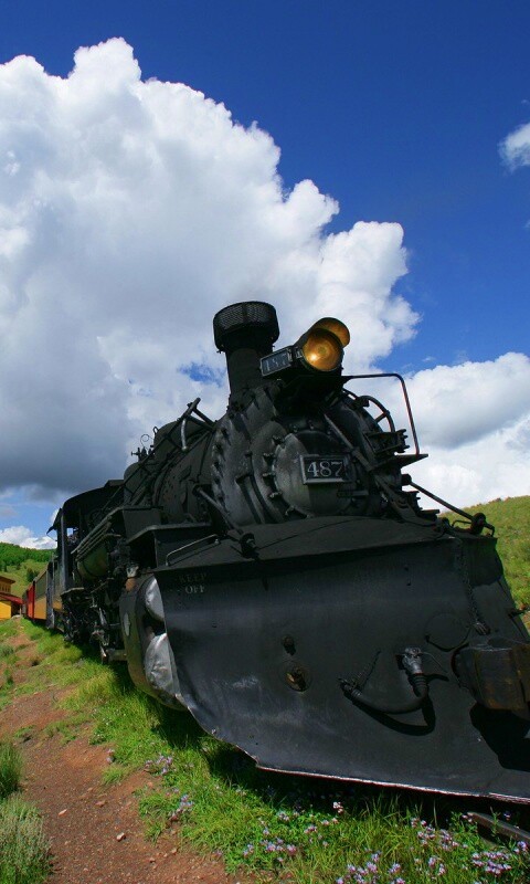 Обои для рабочего стола «Паровоз на деревенской станции» 480х800 с фильтром vibrance (оригинал 1920х1200)