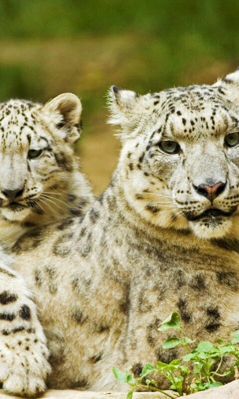 Обои для рабочего стола «Самка снежного барса с котенком» 480х800 с фильтром vibrance (оригинал 1920х1200)