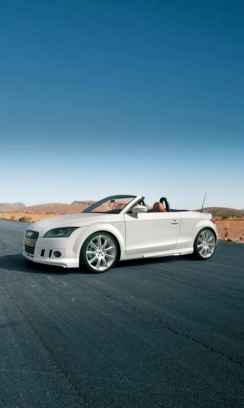 Обои для рабочего стола «Кабриолет Ауди на пустынной дорге» 480х800 с фильтром vibrance (оригинал 1920х1200)