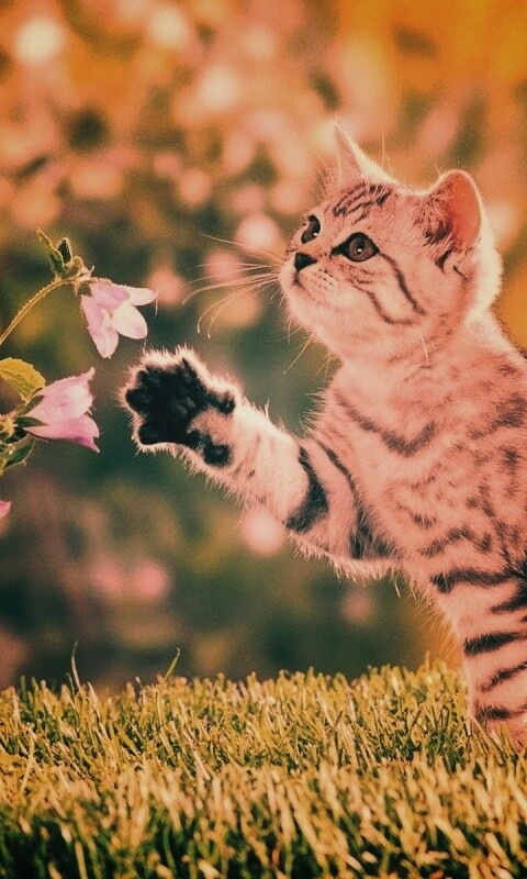 «Котенок играет с цветами»