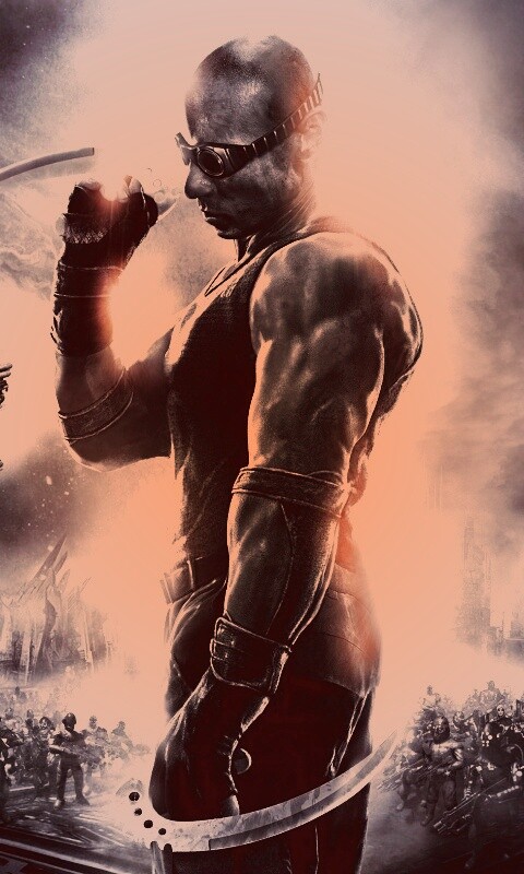 Обои для рабочего стола «Риддик с клинками» 480х800 с фильтром toaster (оригинал 2560х1575)
