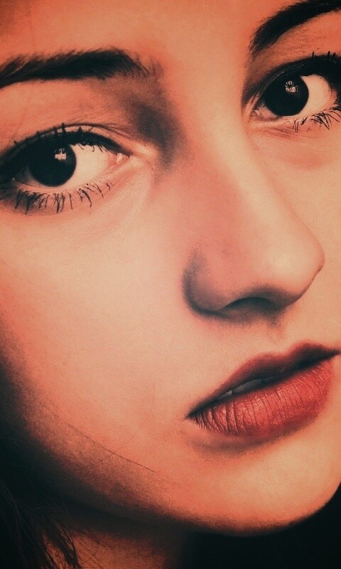 «Брюнетка с ярким макияжем и печальным лицом»