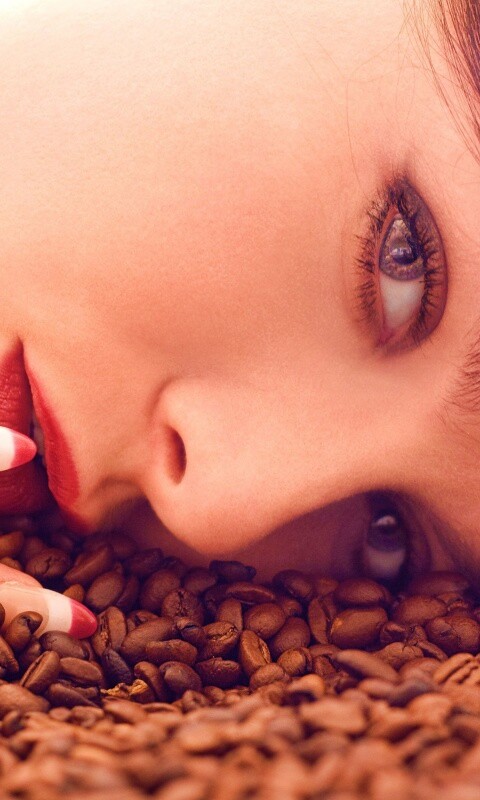 «Соблазнительная девушка с кофейными зернами»