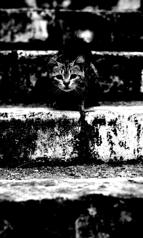 «Растрепанная кошка на ступеньках лестницы»