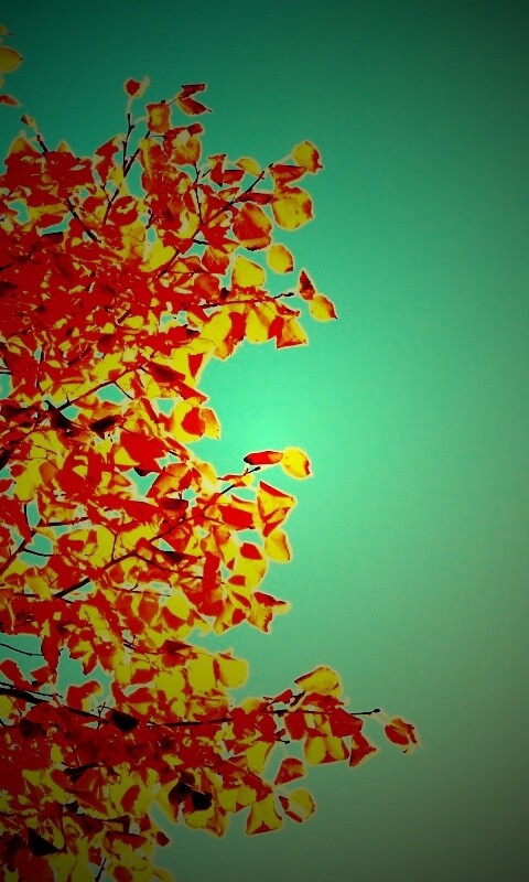 «Ветви с пожелтевшими листьями на фоне неба»