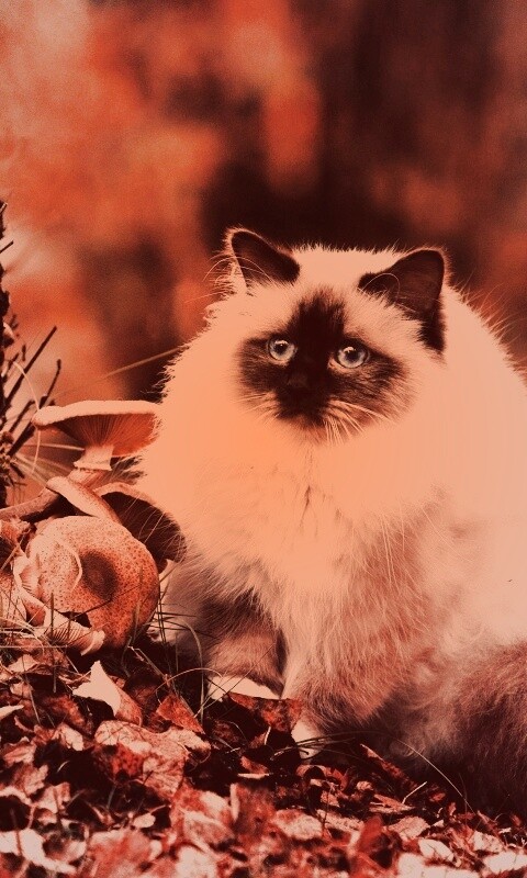 «Пушистый кот среди пожелтевшей листвы»