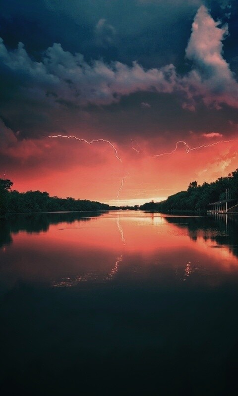 «Молнии на фоне заката, стандартные обои mac»