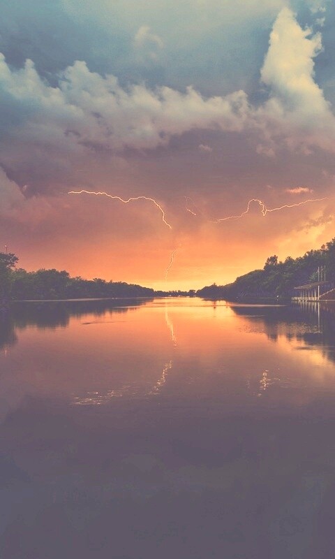 «Молнии на фоне заката, стандартные обои mac»