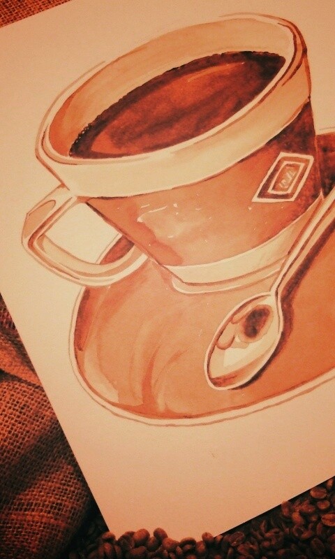 Обои для рабочего стола «Нарисованная чашка кофе» 480х800 с фильтром earlybird (оригинал 2560х1600)