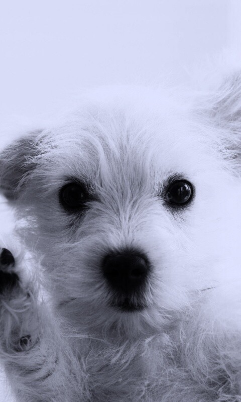 Обои для рабочего стола «Белый любознательный щенок» 480х800 с фильтром gotham (оригинал 1400х1050)