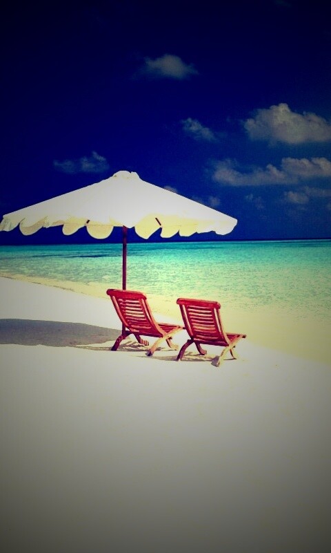 «Песчаный пляж с двумя жезлонгами»