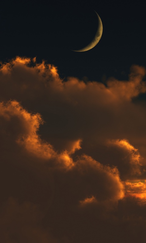 Обои для рабочего стола «Закат и месяц над облаками» 480х800 (оригинал 1920х1080)