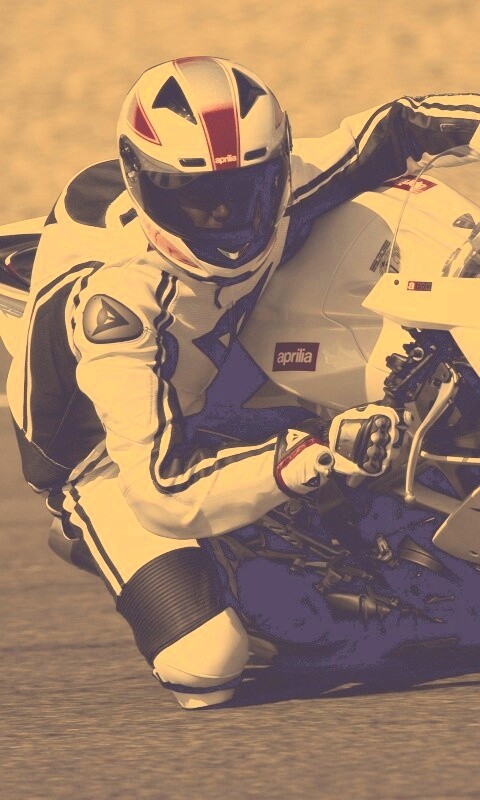 «Байкер в белой экиперовкена Априлия РСВ4»