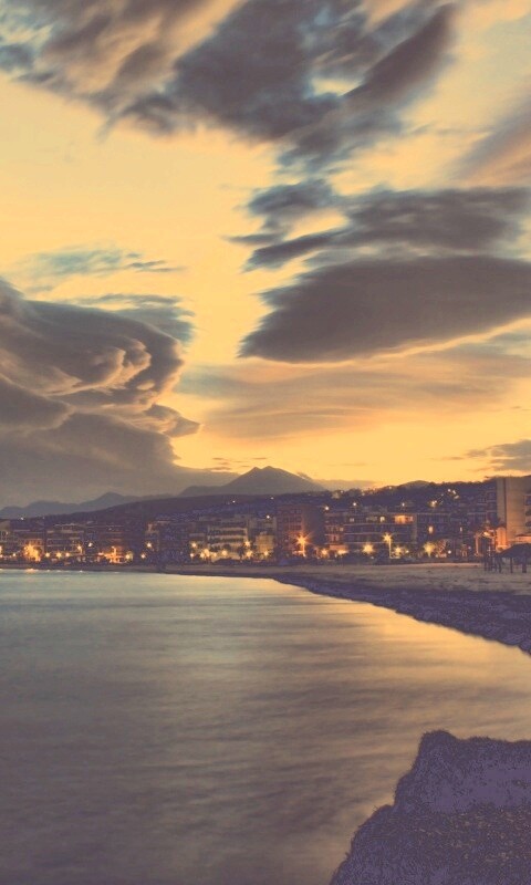 «Красивый закат над городом у моря»
