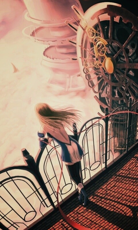 Обои для рабочего стола «Девушка в городе над облаками» 480х800 с фильтром earlybird (оригинал 1700х1250)