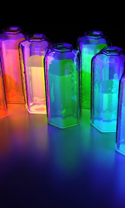 Обои для рабочего стола «Баночки с цветными жидкостями» 480х800 с фильтром vibrance (оригинал 1920х1080)