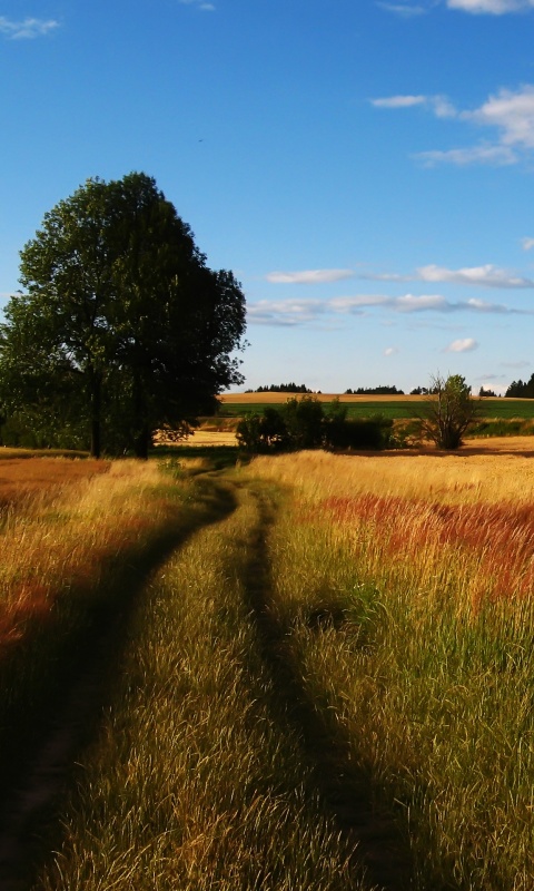 Обои для рабочего стола «Колея в поле» 480х800 (оригинал 3072х1922)