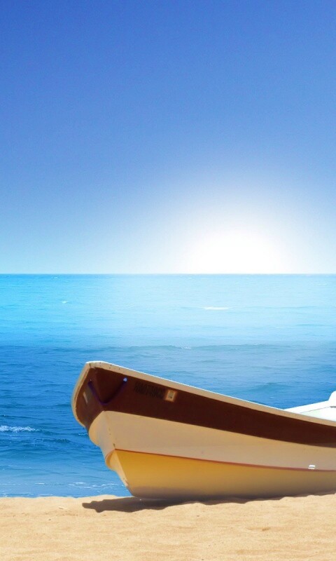 Обои для рабочего стола «Лодка на пляже» 480х800 с фильтром vibrance (оригинал 1600х1200)