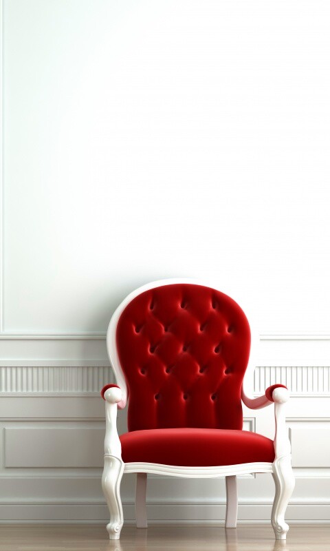 «красное кресло в белой комнате»
