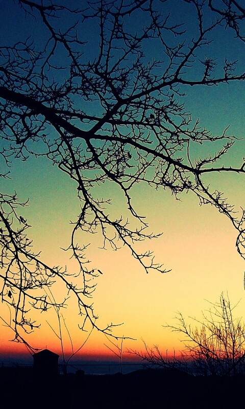 «Закат сквозь ветки деревьев»