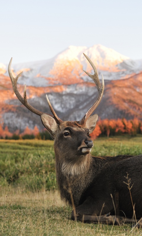 Обои для рабочего стола «Олень отдыхает в предгорьях» 480х800 (оригинал 6048х4032)