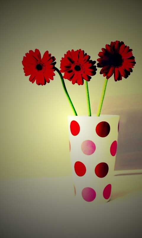 «Вазочка с тремя красными герберами»